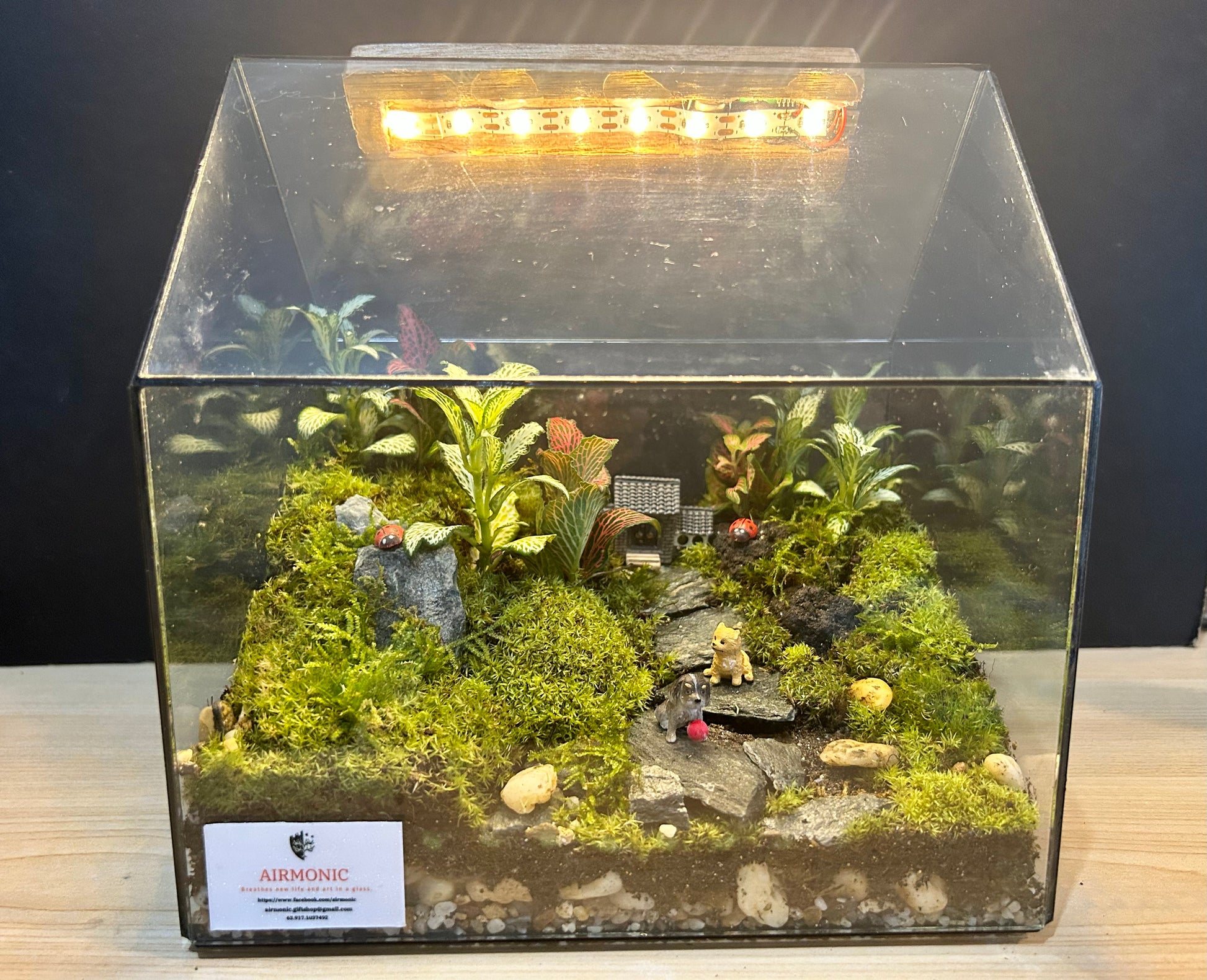 Create your own mini world with our Glass House Custom Terrarium from the EnvisionScapes collection. This L8xW8xH6 inch terrarium comes with Airmonic's specially designed rechargeable LED light in 3 shades.