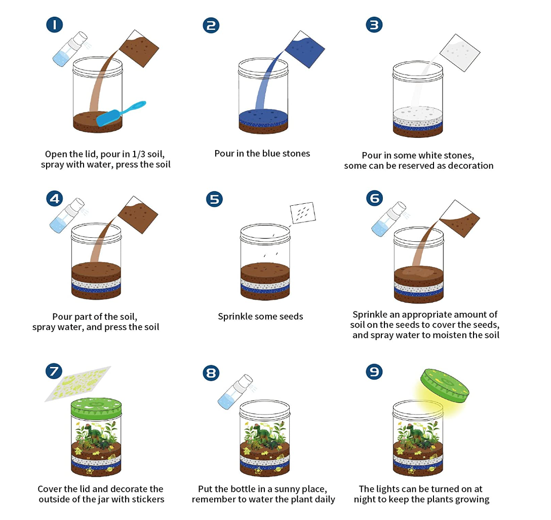 Looking for an engaging and educational toy that's also tons of fun? Look no further than our Glowing Dinosaur Valley Terrarium Kit! This STEM toy is perfect for children who love dinosaurs, offering a hands-on way to learn about ecosystems and plant growth. With its LED lights, 3 dinosaur figurines, soil, sand, seeds, and step-by-step instructions, kids can create their own mini garden and watch it grow.