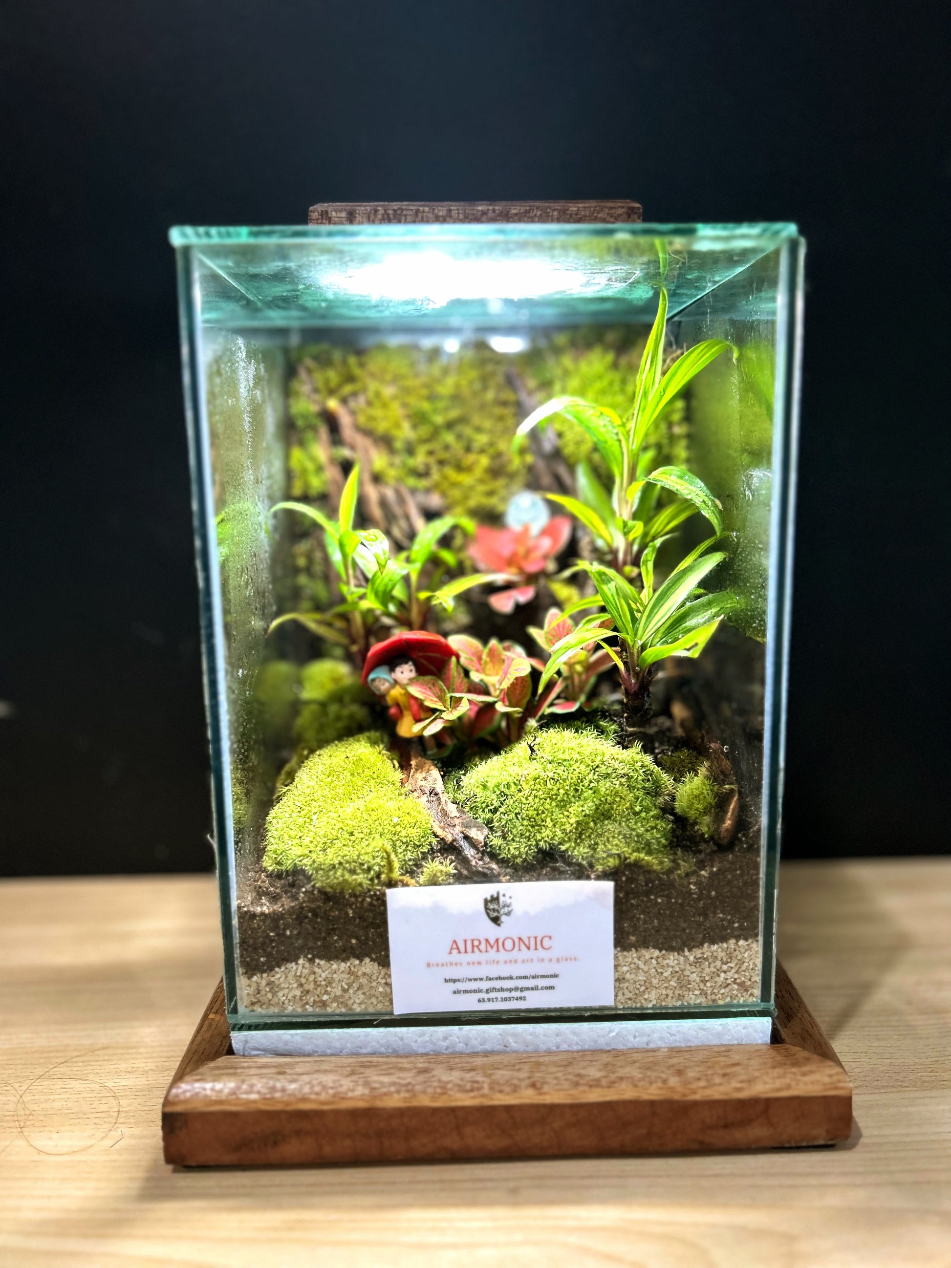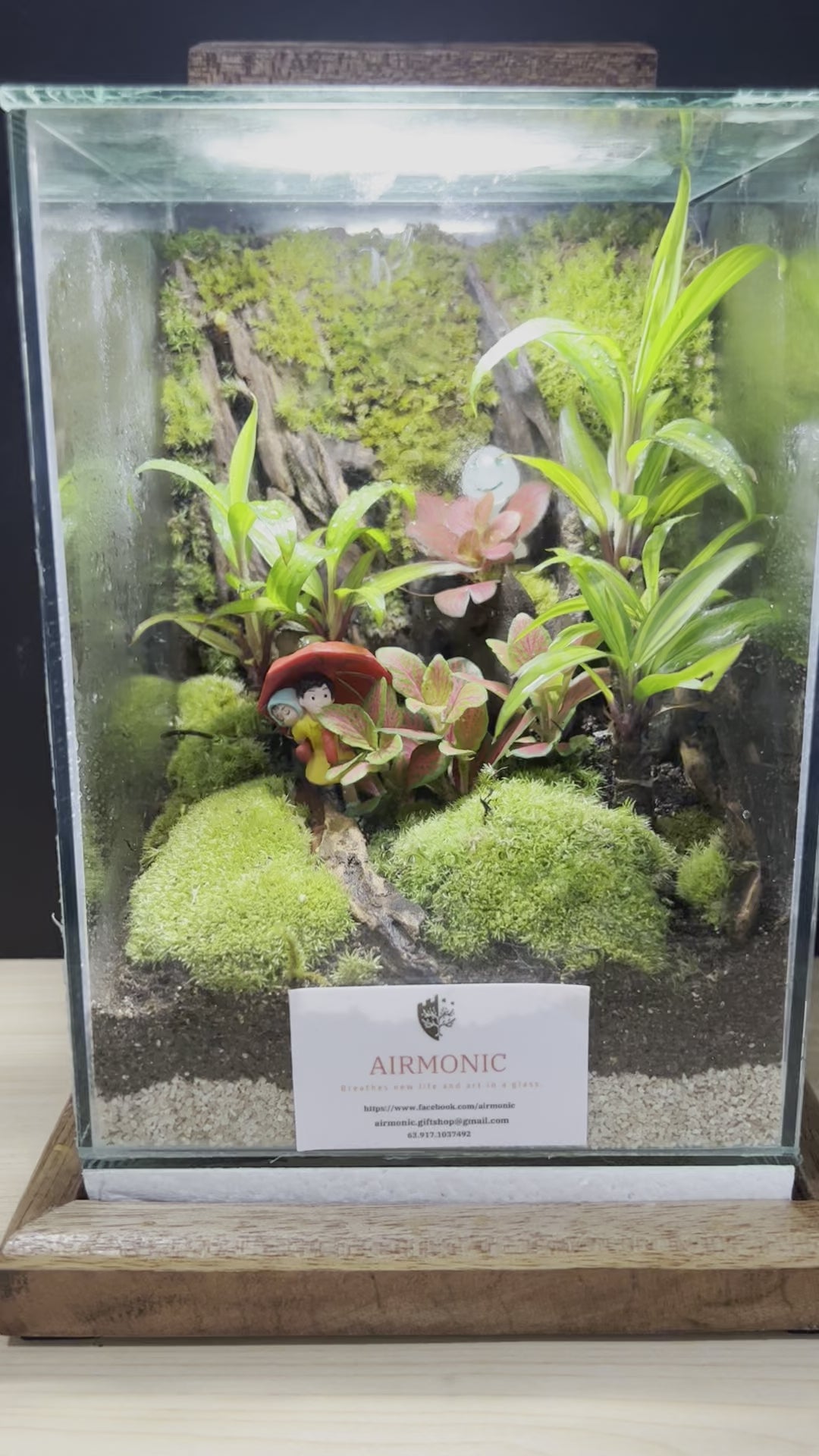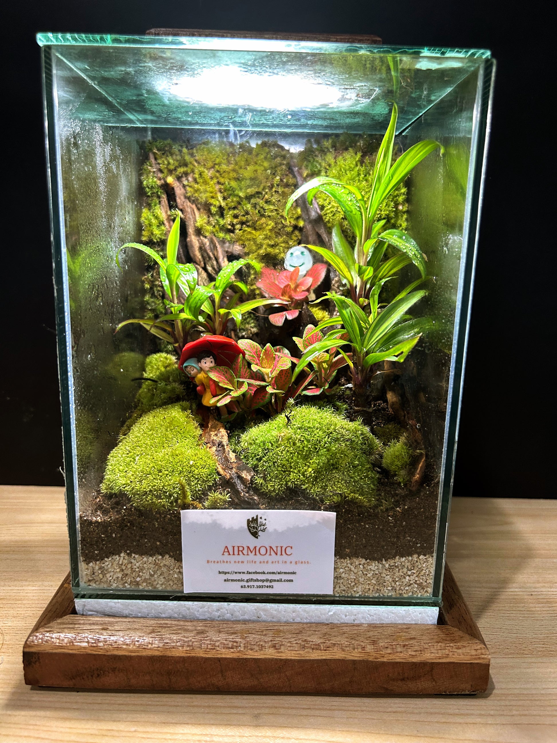 Experience the enchantment of the Marikit Terrarium, inspired by the beloved movie "My Neighbor Totoro." This 6x6x8 inch terrarium captures the essence of sibling love amidst a friendly forest. Watch as the little ones explore, play, and connect with nature, while a hidden kodama (tree spirit) adds an element of magic to their adventures.
